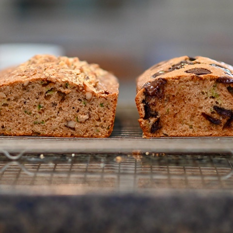 If you grow zucchini (or you know someone who does) then you have too much zucchini. Use some of it in this zucchini loaf loaded with healthy ingredients like olive oil, walnuts, and dark chocolate.