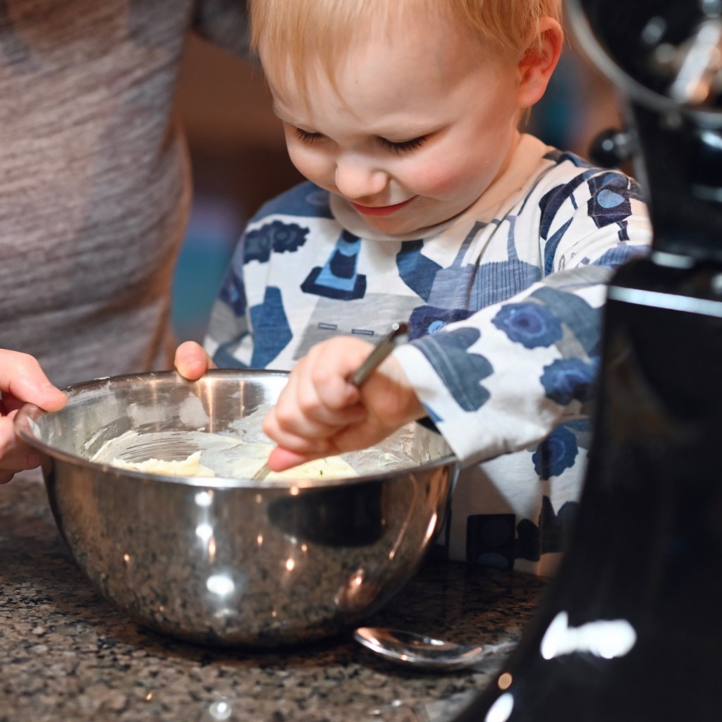 - Beat in eggs one at a time until well combined, scrape down the bowl as needed